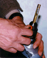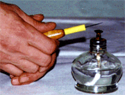 Step 5: Heat the end of the bodkin and pull back through the plug. A candle works as well as the alcohol lamp.