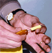 Step 3: Remove the plug. This step is made easier if the cutter is dipped in soapy water before the plug is cut.