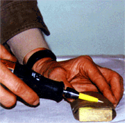 Step 6: After pushing onto the mandrel of the high speed rotary tool, shape with sandpaper. A sanding block helps. Fine sandpaper (220 to 300 grit) works best. Tool should run at at least 4,000 RPM. helps. Fine sandpaper (220 to 300 grit) works best. Tool should run at at least 4,000 RPM.